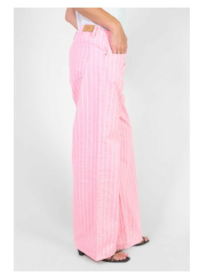 Adoptez l’élégance décontractée avec ce jeans flare wide leg, un essentiel pour sublimer votre silhouette tout en restant confortable. Sa coupe évasée et sa teinte rose rayée apportent une touche moderne et féminine à toutes vos tenues.