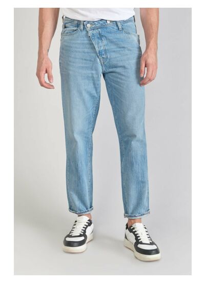 Réponse. Il présente une coupe loose, large, avec une forme resserrée aux hanches et droite aux cuisses, genoux et chevilles.