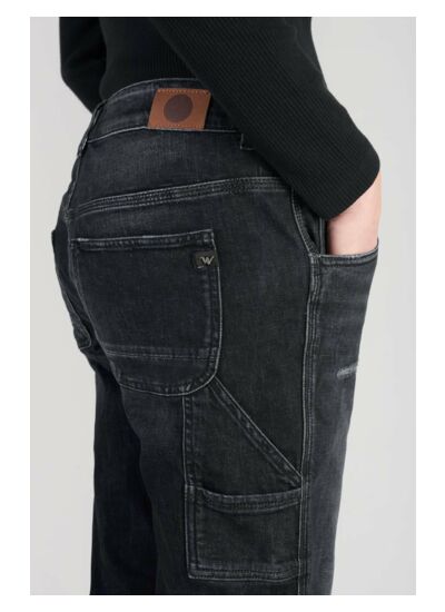 Fait partie de la gamme Héritage, la plus travaillée de la marque Le temps des cerises. Toile peu stretch italienne Candiani. Coupe loose, large avec jambe resserrée. Taille standard. Fermeture zippée YKK personnalisée LTC. Détails d’usure authentiques : abrasions, trous réparés, double boutonnage visible, bords de poches usés.