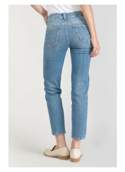 Ce jeans offre un effet gainant au niveau du ventre grâce à sa taille haute, tout en affinant la silhouette. Son design travaillé avec double boutonnage visible et fermeture zippée YKK personnalisée assure une tenue parfaite et un charme unique.
