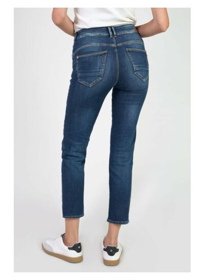 Issu de la gamme Héritage, la plus travaillée de la marque Le Temps des Cerises, ce jeans est réalisé en toile stretch pour un confort durable. Sa coupe slim, sa taille haute, son effet pulp et sa forme étroite au niveau des jambes sont sublimés par un double boutonnage visible et des surpiqûres contrastées. La fermeture zippée YKK personnalisée LTC garantit une finition soignée.
