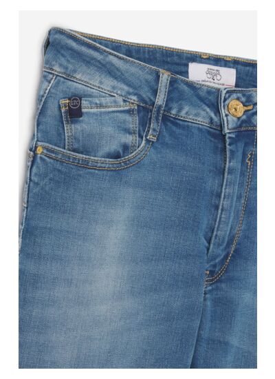 Toile stretch pour un confort extensible. Coupe slim ajustée. Taille haute pour un effet gainant. Effet push-up repulpant. Forme jambe étroite et chevilles dégagées. Fermeture zippée YKK personnalisée LTC. Marque : Le Temps des Cerises.