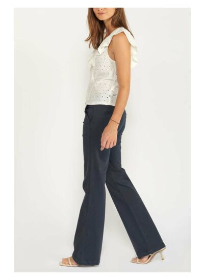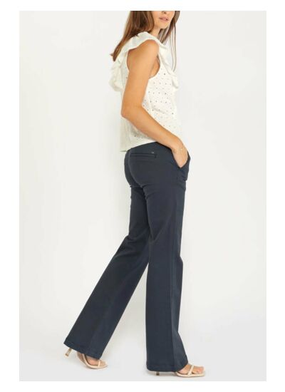 Coupe : bootcut flare. Hauteur de taille : standard. Fermeture : zippée. Poches : avant italiennes, arrière passepoil. Tissu : chino stretch uni. Style : city. Marque : Le temps des cerises.