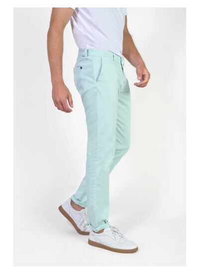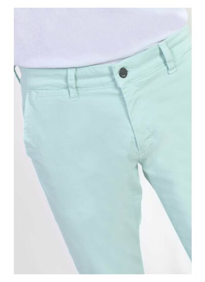 Coupe chino, hauteur de taille standard, fermeture zippée. Poches avant italiennes, poches arrière passepoil. Tissu uni, agréable au porter. Style casual. Marque : Le temps des cerises.
