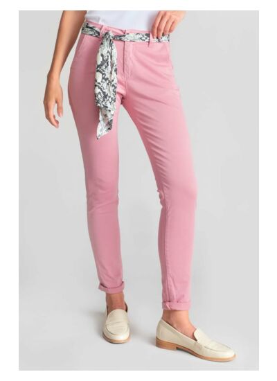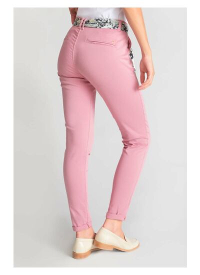 Coupe chino ajustée, taille haute, fermeture zippée. Poches avant italiennes et poches arrière passepoil. Tissu 100% chino uni, confortable et résistant. Style casual signé Le temps des cerises.