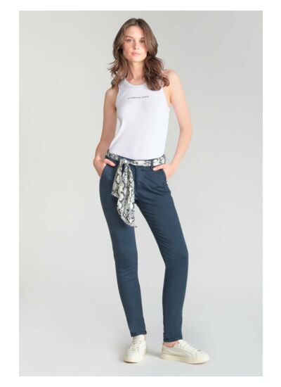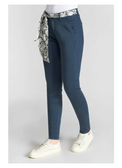 Coupe chino ajustée, taille haute, fermeture zippée. Poches avant italiennes et poches arrière passepoil. Tissu 100% chino uni, confortable et résistant. Style casual signé Le temps des cerises.