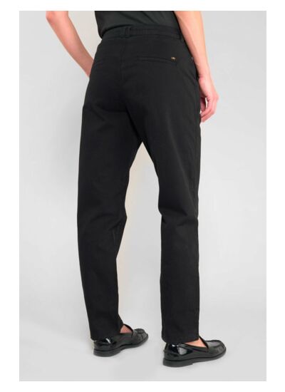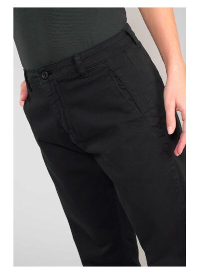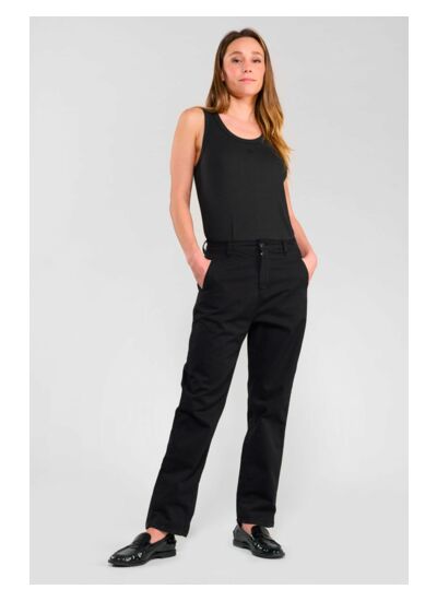 Coupe chino, taille haute, fermeture zippée. Poches avant italiennes, poches arrière passepoil. Tissu chino uni. Style city. Marque Le temps des cerises.