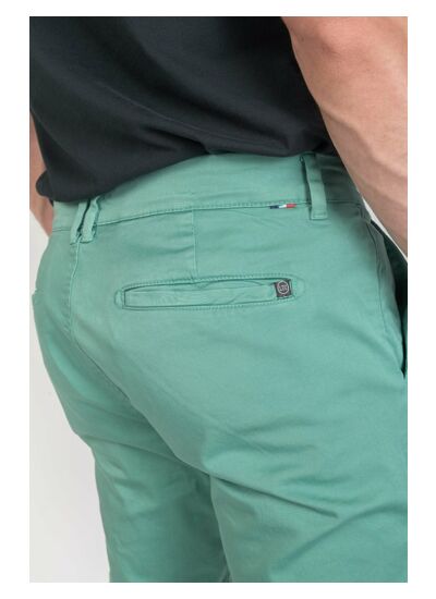 Coupe chino, hauteur de taille standard, fermeture zippée. Poches avant italiennes, poches arrière passepoilées. Tissu léger uni. Style casual. Produit issu de la gamme Eco Friendly.