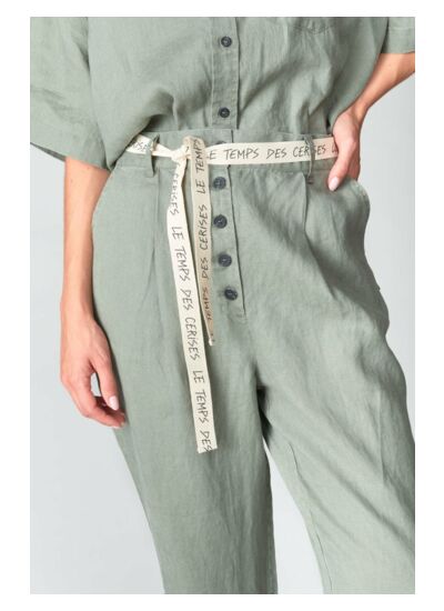 Coupe droite, taille haute, fermeture boutonnée, tissu léger et motif uni. Marque : Le temps des cerises. Style casual, idéal pour un usage quotidien.