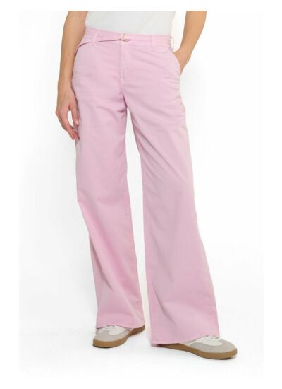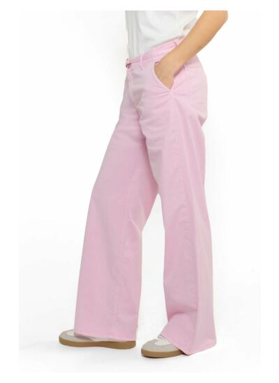 Coupe flare, taille standard, fermeture zippée, poches italiennes, tissu chino uni. Style city, marque Le temps des cerises.