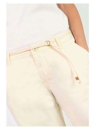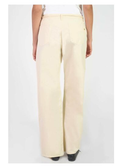 Coupe flare, taille standard, fermeture zippée. Poches italiennes. Tissu chino uni, style city. Marque : Le temps des cerises.