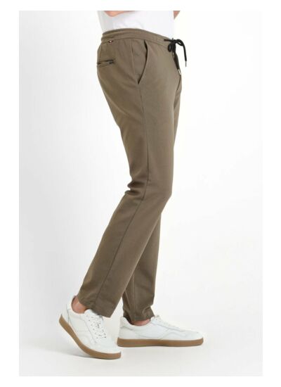 Coupe jogpant, hauteur de taille standard, fermeture zippée. Poches avant italiennes et poches arrière passepoil. Tissu agréable au toucher. Motif uni, style casual. Marque : Le temps des cerises.