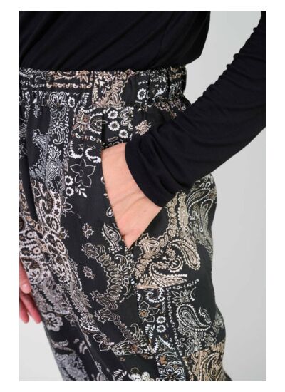 Profitez d’une liberté de mouvement optimale grâce à sa coupe ample et d’un maintien parfait grâce à sa taille haute. Le tissu fluide garantit une sensation de légèreté tout au long de la journée, tandis que le motif cachemire apporte une touche sophistiquée à vos tenues.