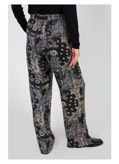 Coupe loose, large, taille haute. Poches italiennes. Tissu fluide à motif cachemire. Style city. Marque : Le temps des cerises.