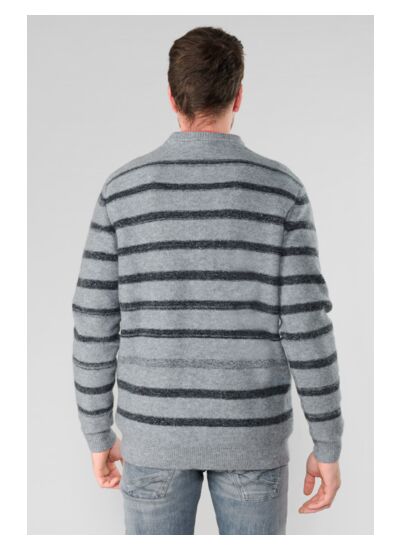 Col rond, coupe droite, manches longues, poignets en bords côtes, grosse maille, motif rayures. Style casual. Marque : Le temps des cerises.