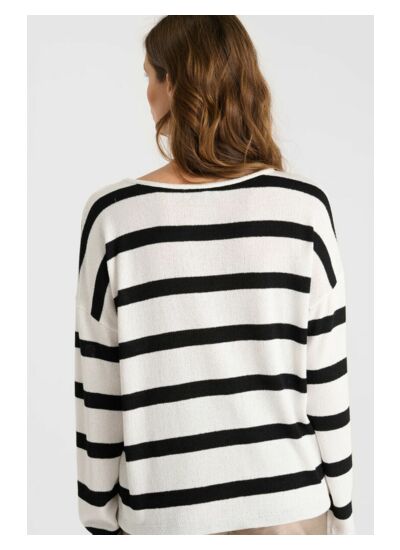Confectionné en fine maille, ce pull léger se porte facilement du matin au soir, offrant une silhouette fluide et un toucher agréable sur la peau. Son col rond classique et ses manches longues en font un allié parfait pour les journées fraîches sans sacrifier la légèreté. Le design rayé, signature d’un style casual affirmé, s’intègre aisément à toutes vos envies mode.