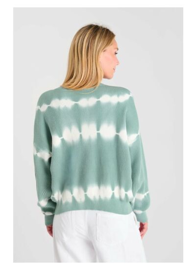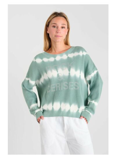 Col rond, coupe boyfriend ample, manches longues, poignets en bords côtes. Maille fine et légère. Motif tie and dye. Style casual. Marque Le temps des cerises.