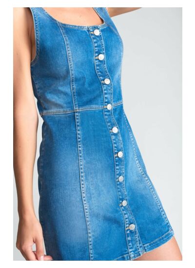 Adoptez une allure urbaine et affirmée avec la robe droite en jeans TIRANA, un essentiel city chic qui sublime votre silhouette. Sa coupe épurée et son col carré apportent modernité et caractère à votre dressing.
