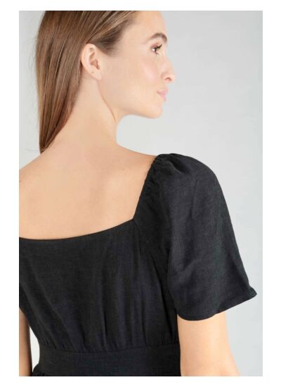 La robe NIGHTY est signée Le temps des cerises, gage de qualité et d’attention aux détails. Elle présente une coupe droite, un col en V, des manches courtes, une longueur courte et un tissu uni agréable au toucher, idéal pour un style city affirmé.