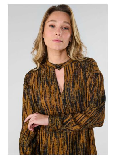 Longueur courte, coupe droite, manches longues avec poignets boutonnés. Tissu agréable au toucher. Motif tie and dye. Marque : Le temps des cerises.