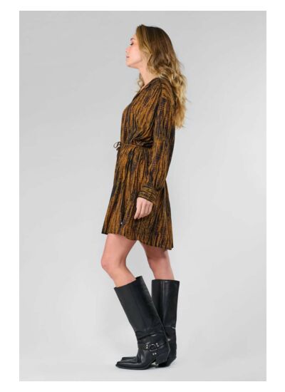 Cette robe vous accompagne du bureau à vos rendez-vous, alliant praticité et allure. Son design business vous permet de rester élégante tout en affichant une personnalité affirmée grâce au motif tie and dye, tendance et unique.