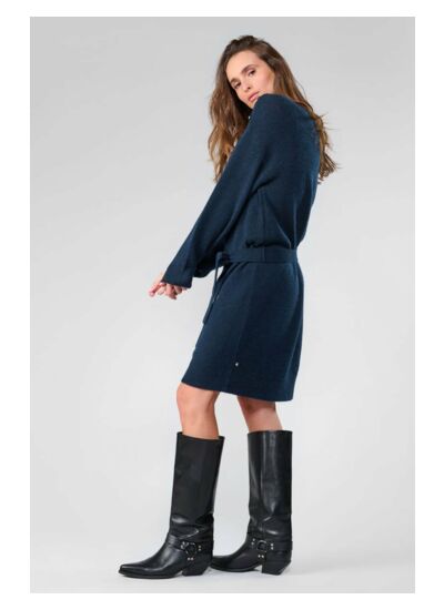 Col rond, manches longues avec poignets en bords côtes, longueur genoux, coupe droite, tissu uni agréable au toucher. Style casual signé Le temps des cerises.