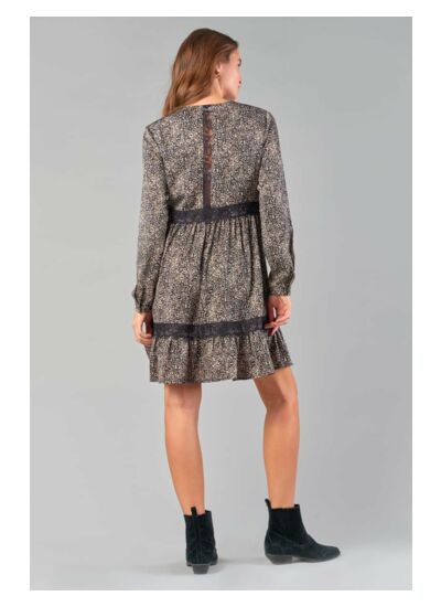 Profitez d’une coupe évasée qui affine la taille et libère le mouvement, idéale pour créer des looks variés, du plus casual au plus sophistiqué. Son imprimé unique et sa finition soignée font de cette robe un choix polyvalent, facile à accessoiriser selon vos envies.