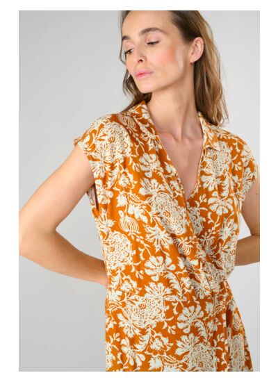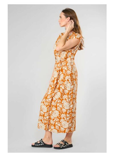 Col V, longueur longue, coupe droite, tissu léger et motif floral. Style city signé Le temps des cerises, cette robe conjugue élégance et confort pour un usage quotidien.