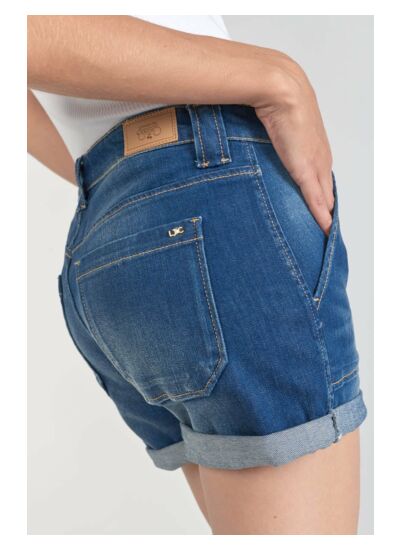 Toile stretch pour un confort ajusté, coupe short, hauteur de taille standard, fermeture zippée, tissu jeans uni. Marque : Le temps des cerises.