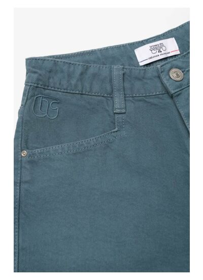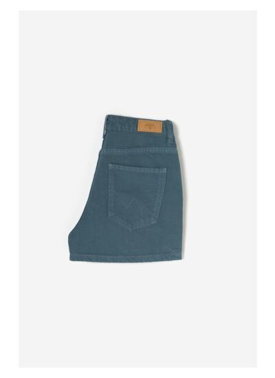 Toile en jeans avec peu de stretch, coupe short, taille haute, fermeture zippée. Motif uni, marque Le temps des cerises.