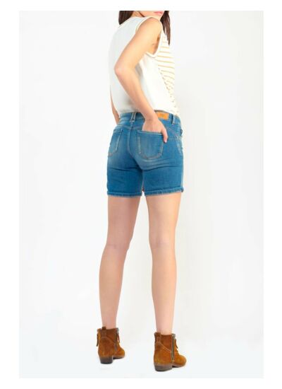 Offrez à votre silhouette une touche moderne et féminine avec le short Paola en jeans bleu délavé. Son effet push-up sublime vos courbes tout en assurant un confort optimal grâce à sa toile stretch.
