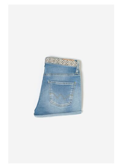 Réponse. Le short est réalisé en toile stretch, un tissu jeans qui combine élasticité et robustesse.