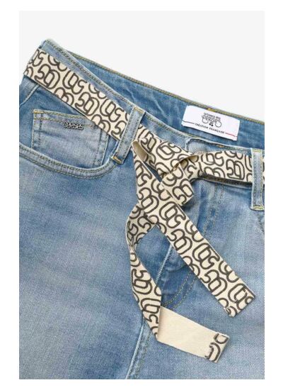 Toile stretch, coupe short, taille haute, fermeture zippée, tissu jeans uni. Marque : Le temps des cerises.