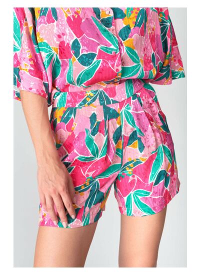 Coupe : short taille haute. Tissu : léger, idéal pour la saison estivale. Motif : imprimé. Marque : Le temps des cerises.