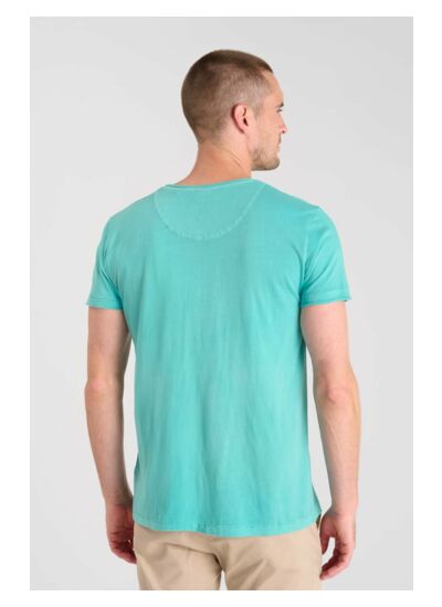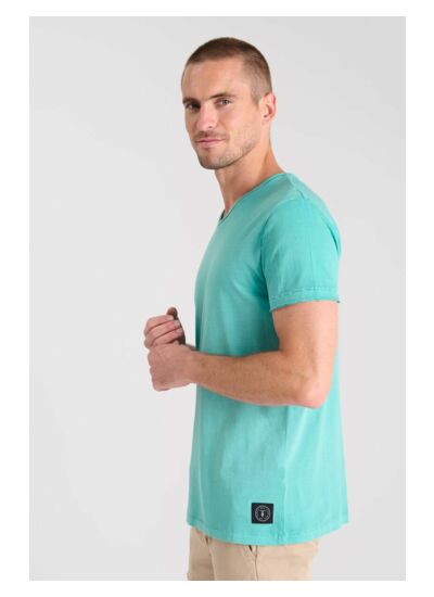 Le Tee-Shirt GRIBS présente une coupe droite, un col en V, des manches courtes et un tissu agréable. Son motif uni souligne la sobriété et la modernité de la pièce. Marque : Le temps des cerises.