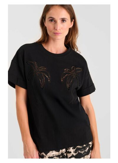 Col rond classique, coupe boyfriend ample, manches courtes, tissu agréable au toucher, motif brodé délicat. Marque : Le temps des cerises.