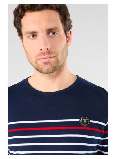 Col rond, manches longues, coupe droite et tissu doux. Motif rayures. Produit issu de la gamme Eco Friendly. Marque : Le temps des cerises.