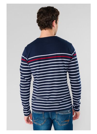 Conçu pour accompagner vos journées avec aisance, ce tee-shirt manches longues séduit par son tissu agréable au toucher, idéal pour toutes les saisons. Son col rond classique assure une silhouette nette tandis que le motif rayé dynamise votre look sans effort. Intégré à la gamme Eco Friendly, il reflète un engagement responsable sans compromis sur le style.