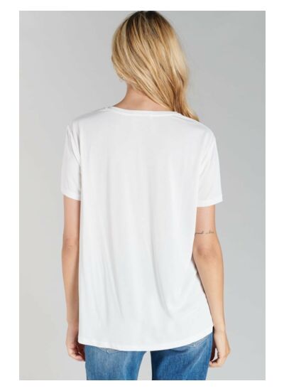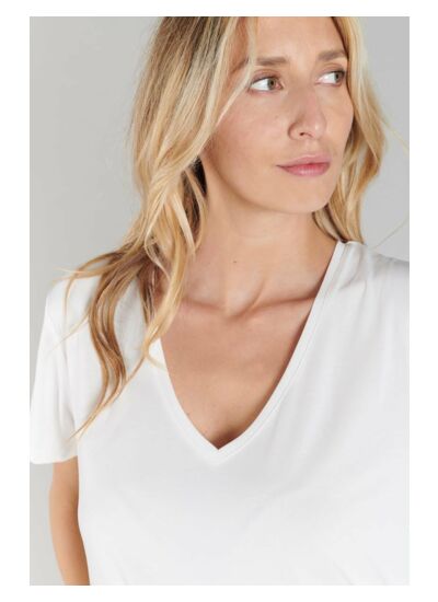 T-shirt à col V, manches courtes, matière douce effet seconde peau. Disponible en plusieurs tailles pour un ajustement parfait. Marque : Le temps des cerises.