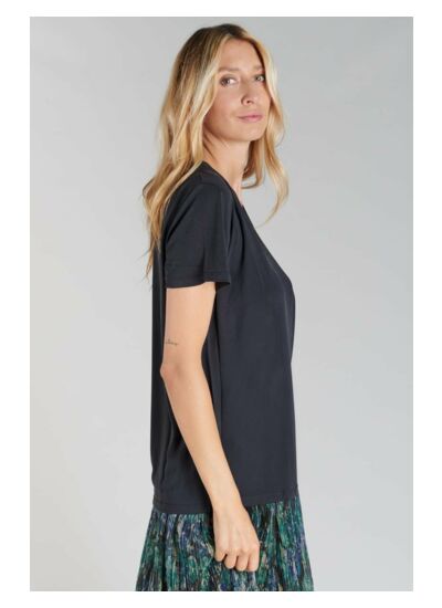 T-shirt à col V, manches courtes, matière douce effet seconde peau. Disponible en plusieurs tailles pour un ajustement parfait. Marque : Le temps des cerises.