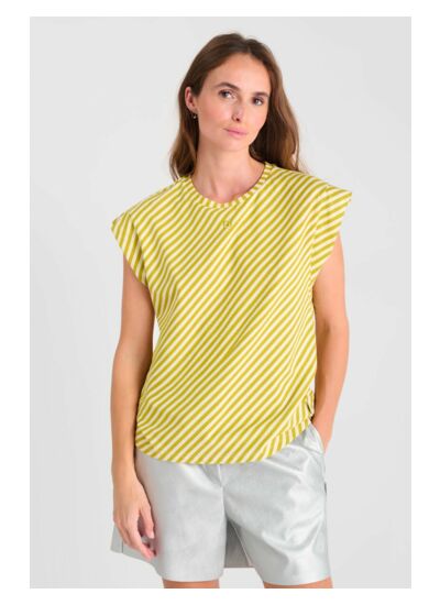 Conçu pour offrir une silhouette fluide, ce tee-shirt à col rond se distingue par sa coupe boyfriend ample qui épouse naturellement le corps sans contrainte. Son tissu doux et agréable garantit un confort optimal, tandis que le motif rayures apporte une touche graphique et dynamique à vos tenues casual.