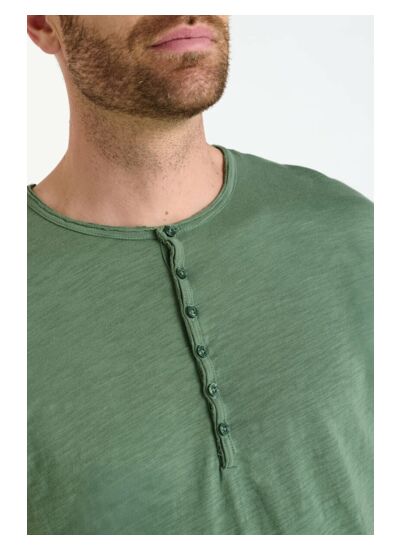 Col tunisien, coupe droite, manches courtes, tissu agréable, motif uni. Fermeture boutonnée. Produit issu de la gamme Eco Friendly de la marque Le temps des cerises.