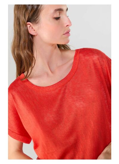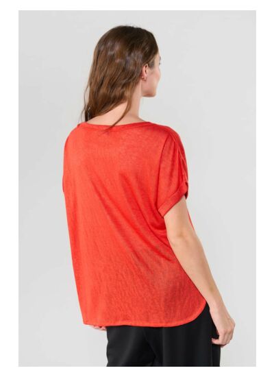 Affichez un style casual et lumineux avec le tee-shirt PATRUL orange, un essentiel féminin qui allie simplicité et éclat subtil. Sa coupe droite et ses touches brillantes apportent une touche de modernité à votre garde-robe.