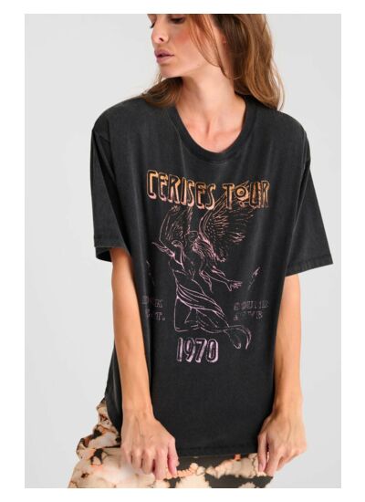 Col rond classique, coupe boyfriend ample, manches courtes, tissu doux et agréable, motif imprimé distinctif. Marque : Le temps des cerises.