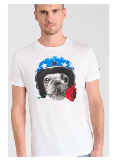 Col rond classique, coupe droite, manches courtes. Tissu agréable au toucher. Motif imprimé. Produit issu de la gamme Eco Friendly. Marque : Le temps des cerises.