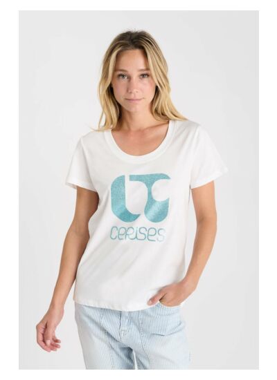 Col rond classique, manches courtes, coupe droite. Tissu doux et agréable à porter. Motif imprimé distinctif. Marque : Le temps des cerises.
