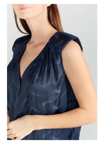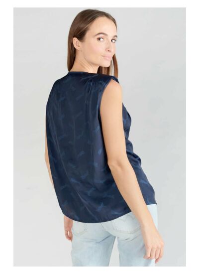 Ce top vous garantit une aisance de mouvement et un maintien impeccable grâce à sa coupe droite. Son tissu fluide assure une excellente respirabilité, parfait pour rester à l’aise toute la journée. Le détail jacquard apporte une touche d’originalité discrète qui valorise votre tenue sans effort.