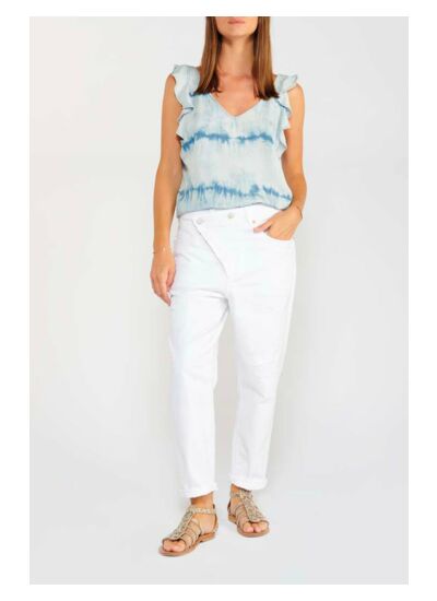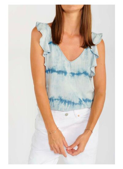 Col V, coupe droite, tissu léger et motif tie and dye caractérisent ce top. Disponible dans plusieurs tailles, il répond aux attentes des femmes recherchant confort et style.