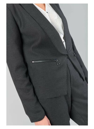 Affirmez votre style avec la veste HELMIE, un blazer au motif pied de poule qui allie élégance et modernité. Sa coupe cintrée et son col châle apportent une touche sophistiquée à toutes vos tenues.