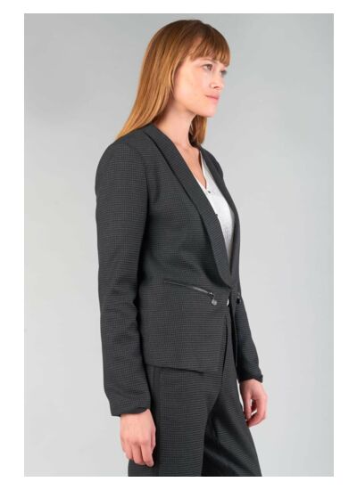 Col châle, coupe cintrée, fermeture par crochet, manches longues, doublée. Motif pied de poule. Blazer femme. Produit Eco Friendly. Marque : Le temps des cerises.
